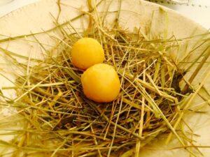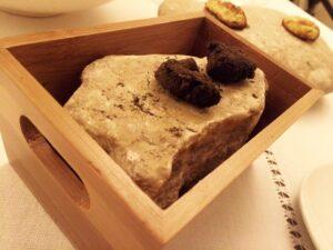 Inizio con un formaggino mio e tartufo ed una pralina di uovo e parmigiano cotto a 65 gradi.