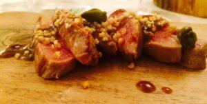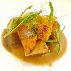Oso ancora di più andando ad assaporare un piatto”estremo”, lo spaghetto aglio ed olio alla genziana, superlativo soprattutto esaltato da uno Chateau Le Thibaut “Monbazillac” del 2009.